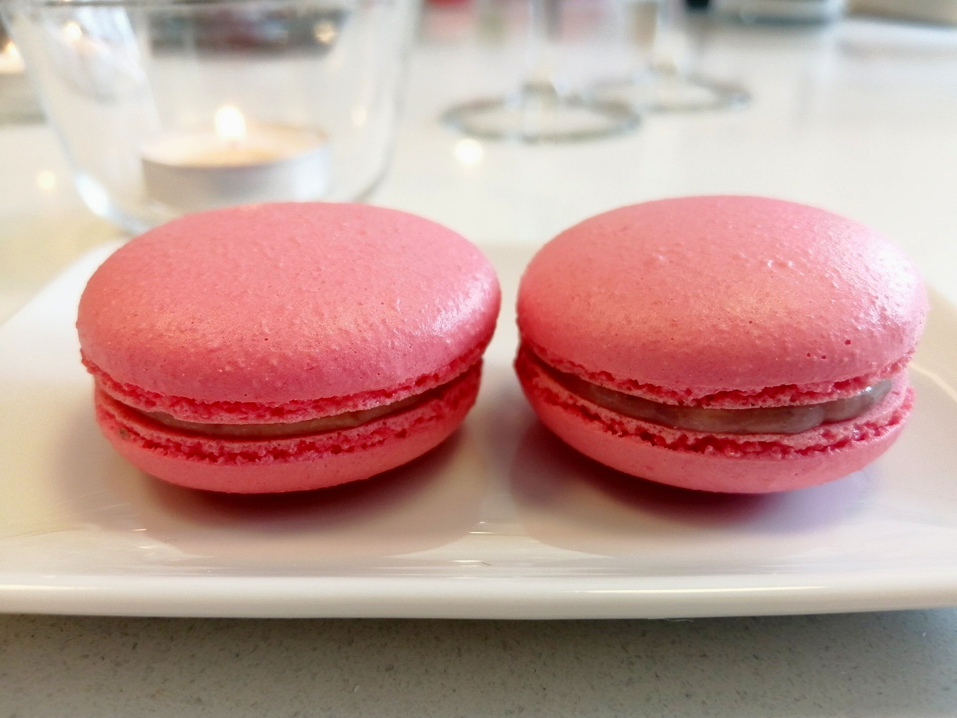 Macaron Shell (63.6%): [Sugar, Icing Sugar, Almonds, Eggs, Carmoisine E122], Raspberry and White Chocolate Ganache (36.4%): [Raspberry Seedless Jam (60%) [Raspberries, Glucose-Fructose Syrup, Sugar, Acid: Citric Acid, Gelling Agent (Pectin), Acidity Regulator (Sodium Citrates), Raspberry Concentrate], White Chocolate Callets (40%) [Sugar, Cocoa Butter, Whole Milk Powder, Emulsifier (Soya Lecithin), Natural Vanilla Flavouring], Salt]