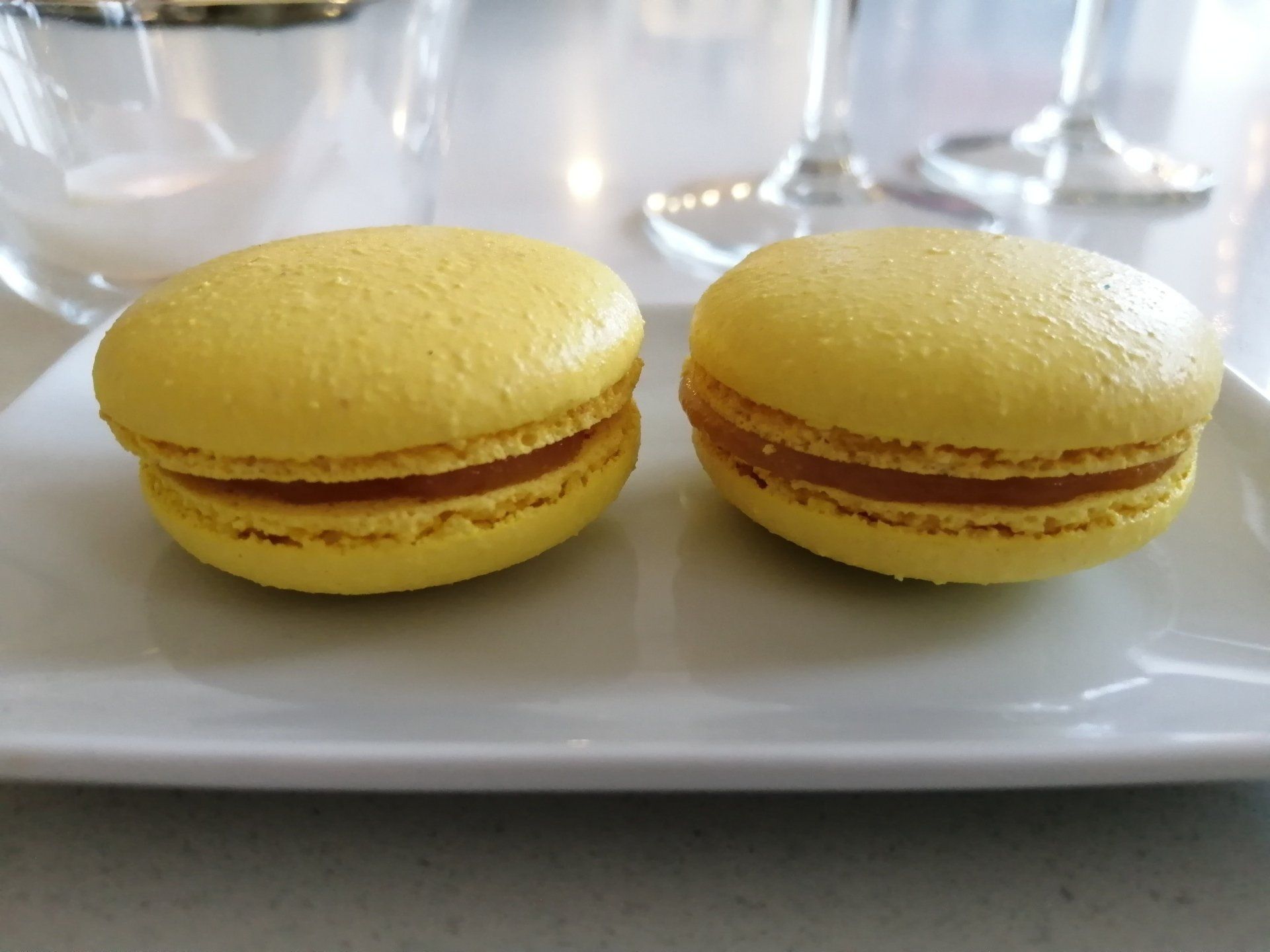 Lemon Macaron Shell (68.1%): [Almonds, Sugar, Icing Sugar, Eggs, Tartrazine E102], Lemon Curd (31.9%): [Glucose-Fructose Syrup, Sugar, Water, Lemon Juice from Concentrate (8%), Maize Starch, Palm Oil, Dried Egg, Rapeseed Oil, Citric Acid, Gelling Agent (Pectin), Acidity Regulator (Sodium Citrate), Lemon Oil, Colour (Carotenes), Antioxidant (Ascorbic Acid).]