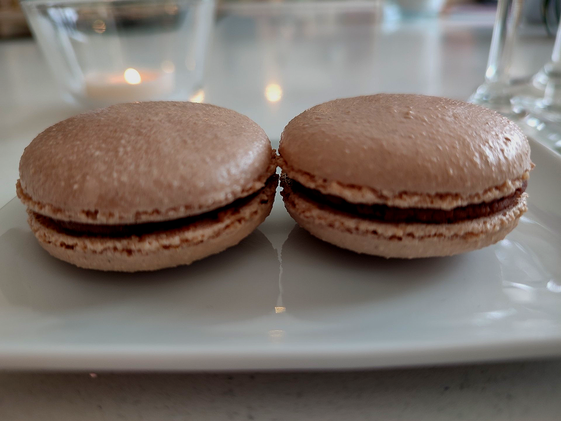 Chocolate Macaron Shell (60%): [Almonds, Sugar, Icing Sugar, Eggs, Cocoa (1.3%) [Organic Cocoa Powder, Acidity Regulator (Potassium Carbonate), Cocoa], Chocolate Ganache (40%): [Double cream (Milk), Milk Chocolate Buttons (40.6%) [Coco, Coco Butter (MILK), Sugar, MILK, Sunflower Lecithin], Dark Chocolate (9.4%) [Cocoa, Cocoa Butter, Sunflower Lecithin], Salt]